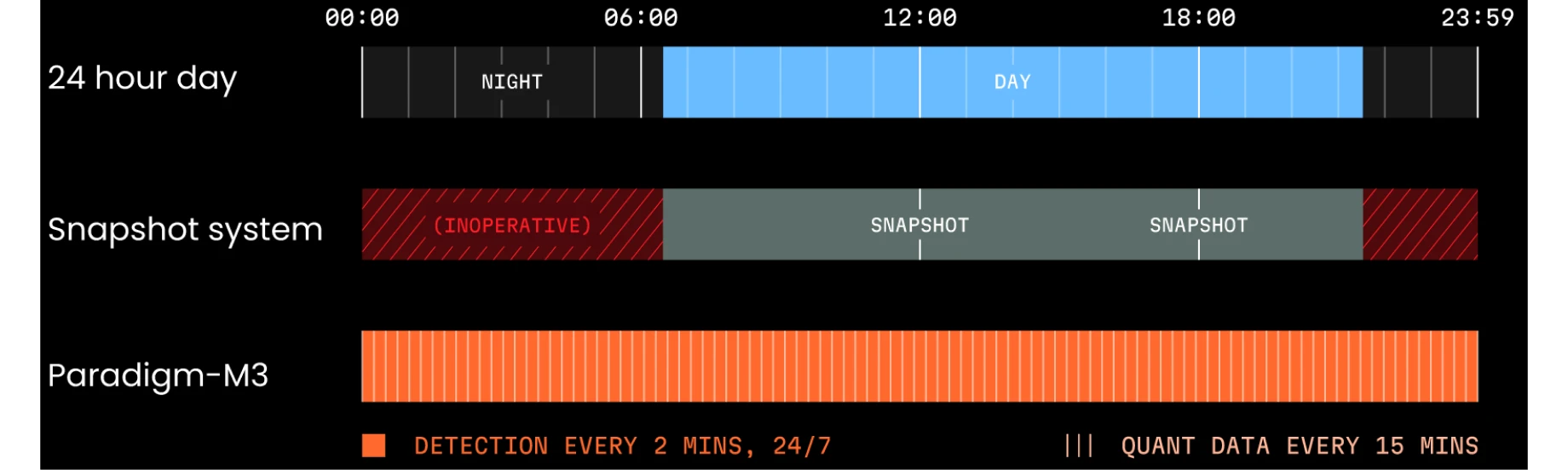 Paradigm M-Series isn’t a snapshot. It’s a live data stream, built to eliminate blind spots, blackout times, and guesswork with trust and confidence. Operators gain true operational visibility, powered by verifiable data they can act on immediately. No gaps. No lag. Continuous monitoring with operationality at its core.